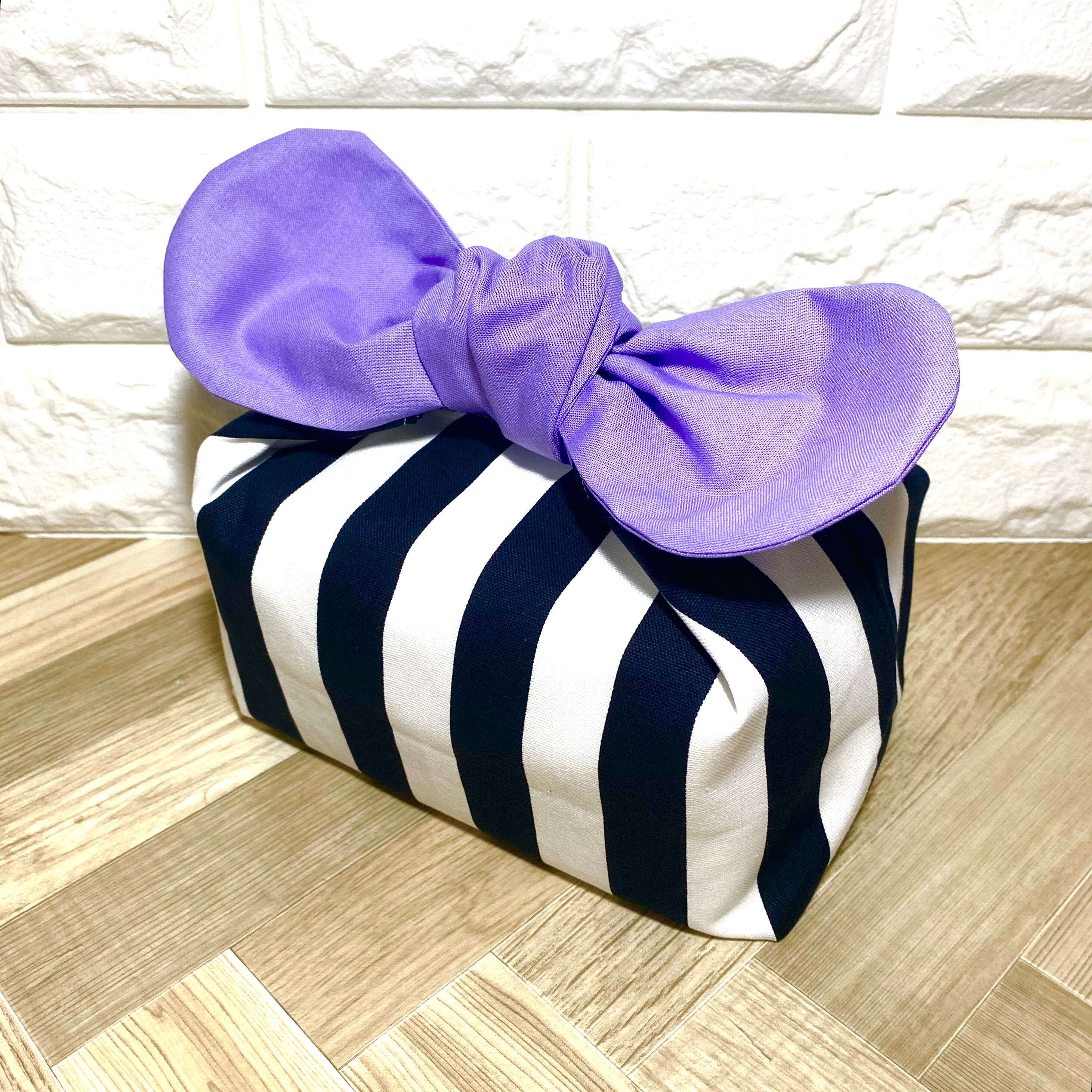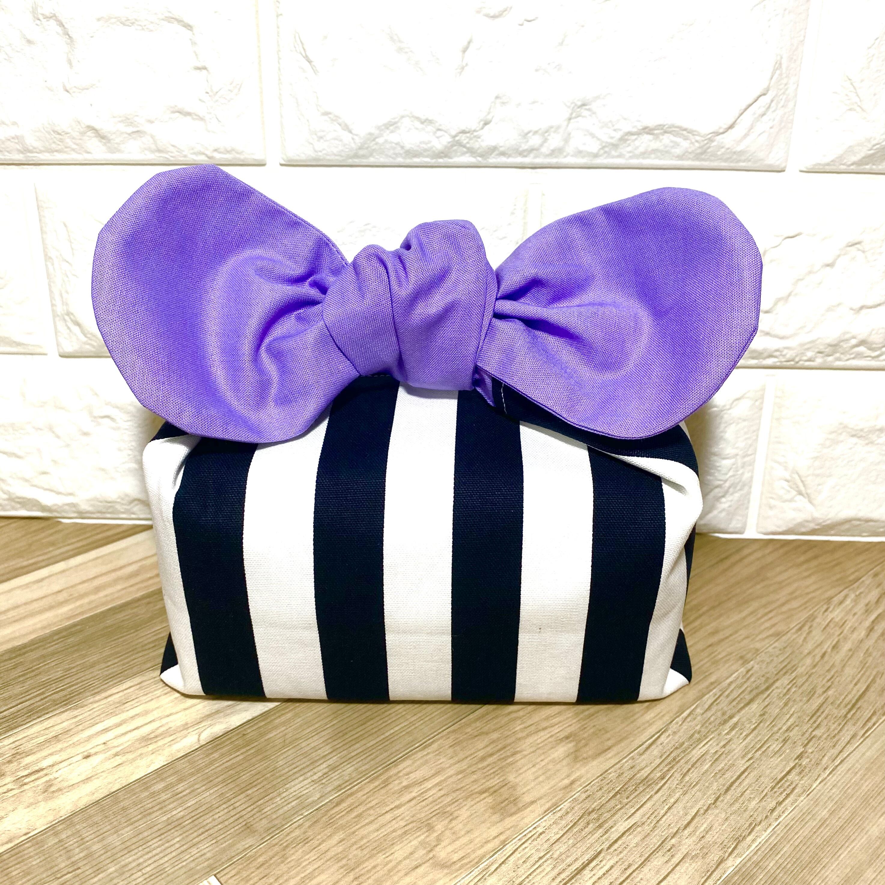 紫リボン×黒ストライプ