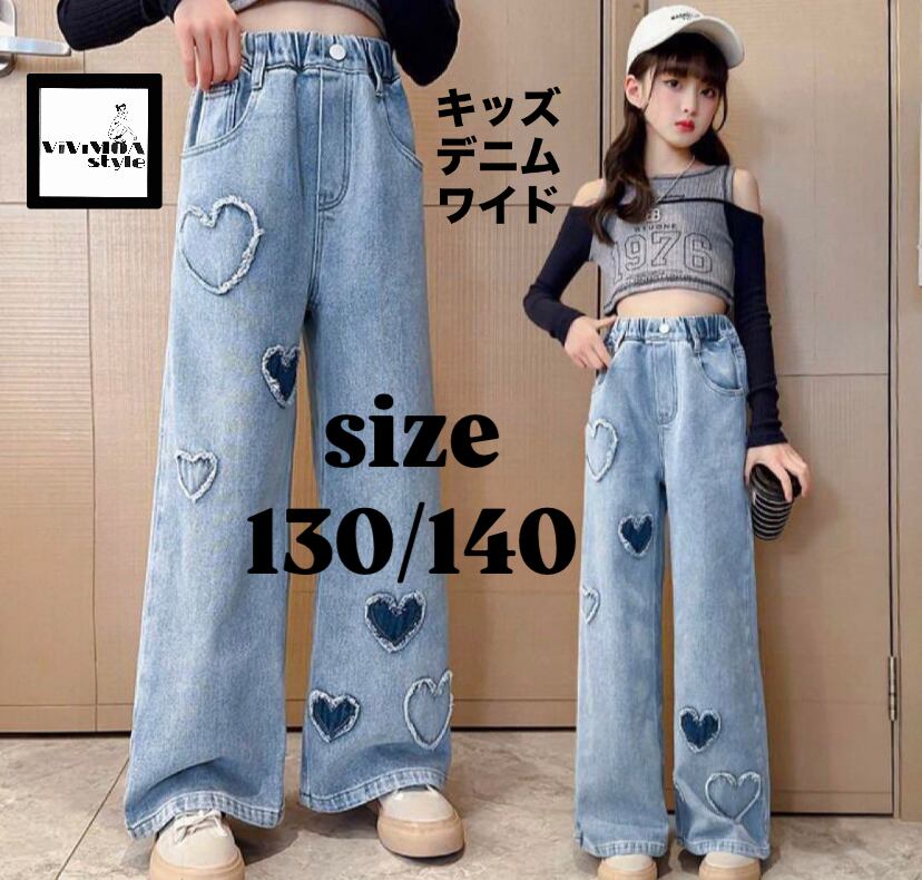 ハートデニムパンツ 女の子 ジーパン ワイドパンツ ジーンズ キッズ ViViMOA