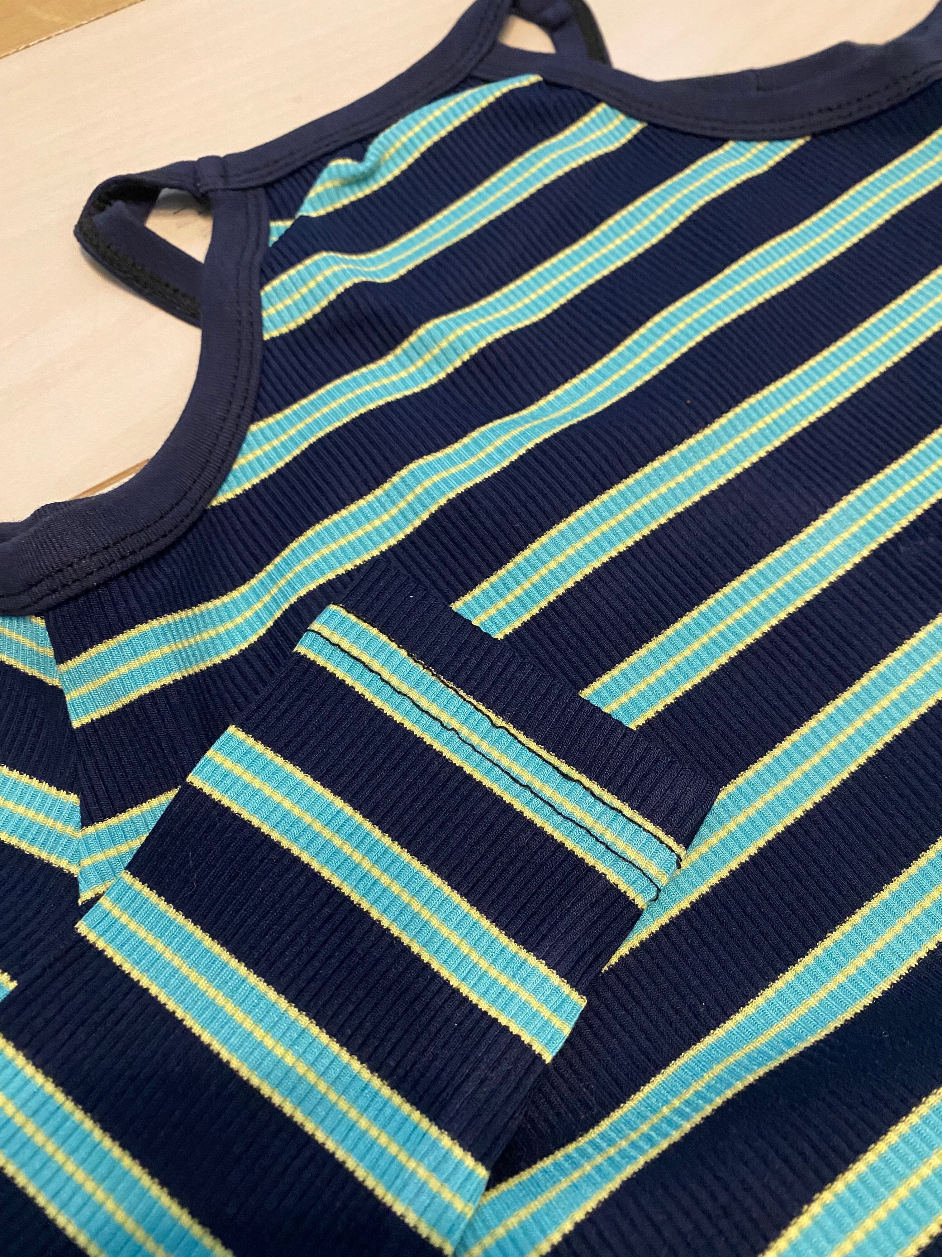 《カラー》緑ストライプ ネイビーデニム
