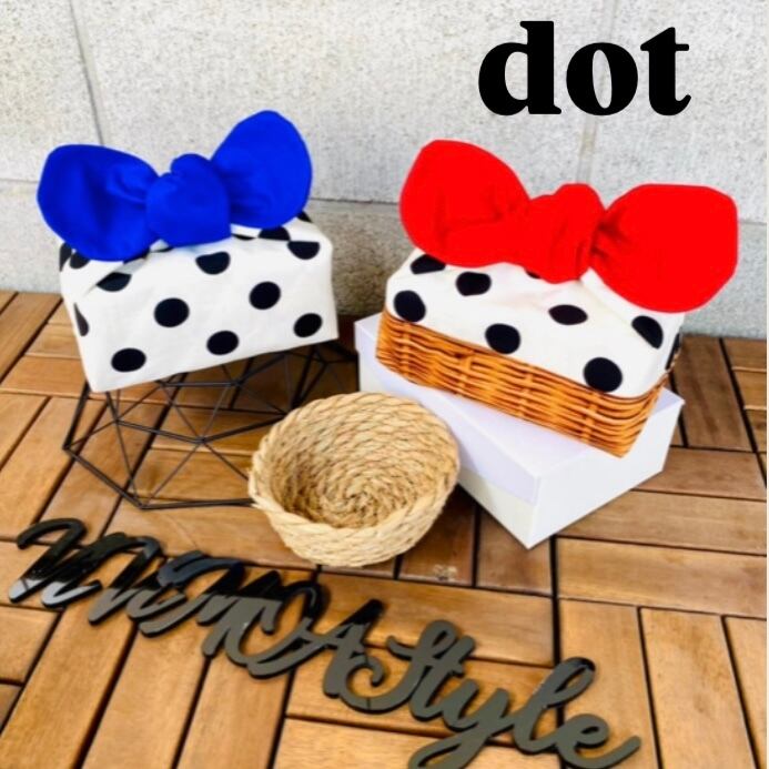赤リボン×白ドット×バスケット柄