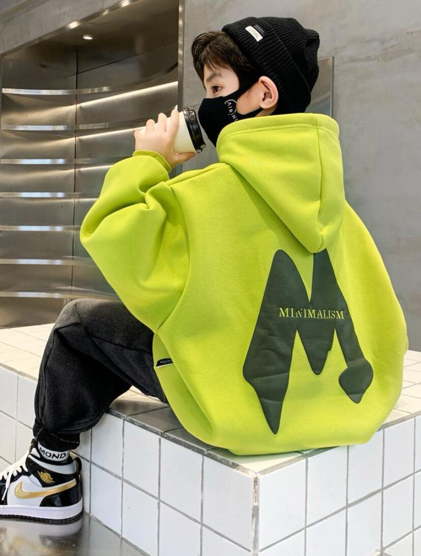 パーカー スウェット トレーナー 黄緑 黒 ロゴペイント ViViMOA Style ビビモア 韓国子供服 vivimoa おしゃれ キッズ