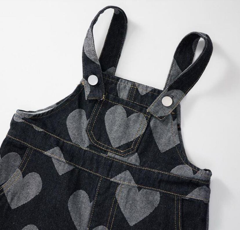 サロペット 120 オーバーオール ジーパン ジーンズ 女の子 ハート デニムパンツ ワイド ViViMOA Style ビビモア 新品 韓国子供服