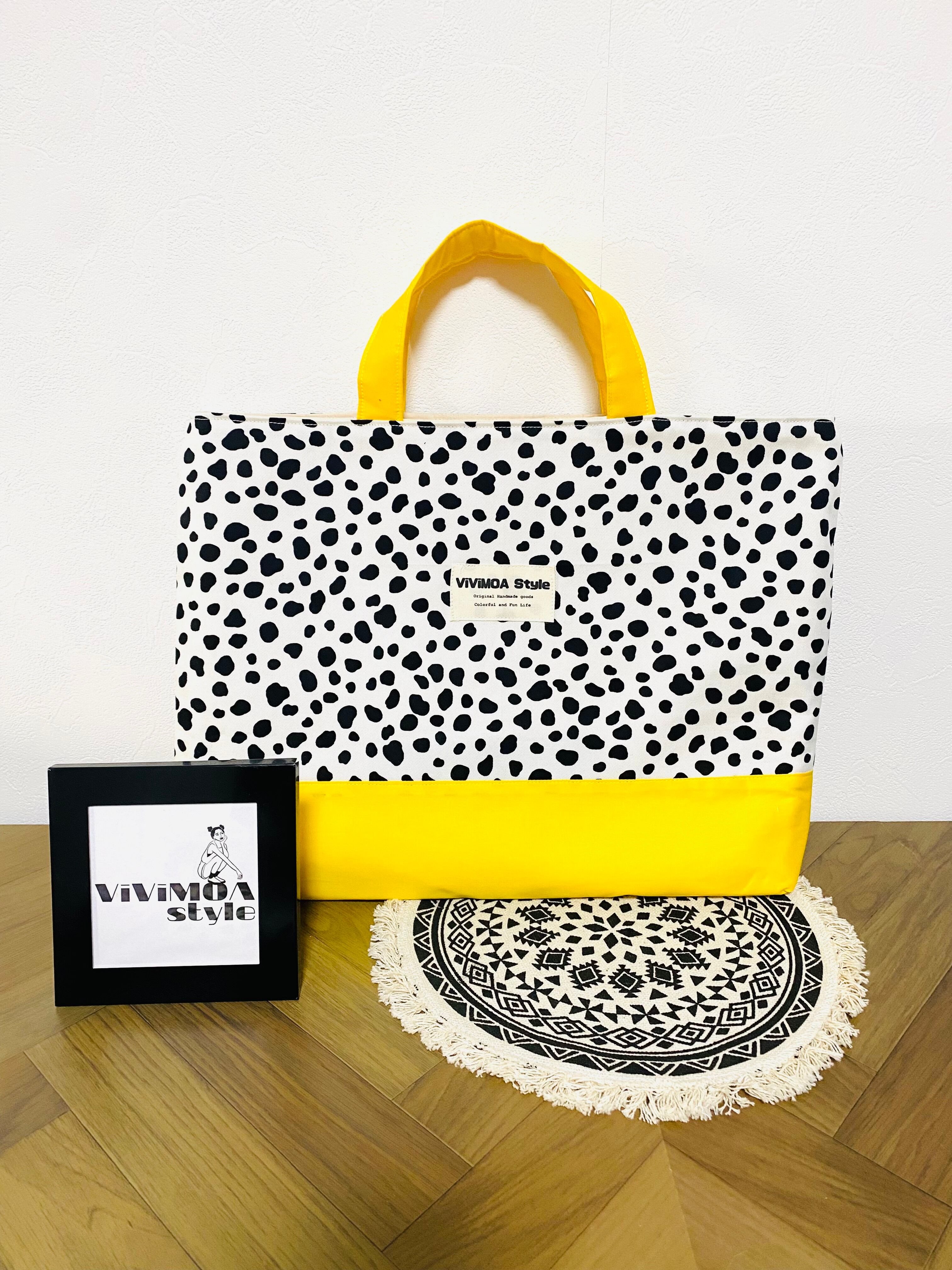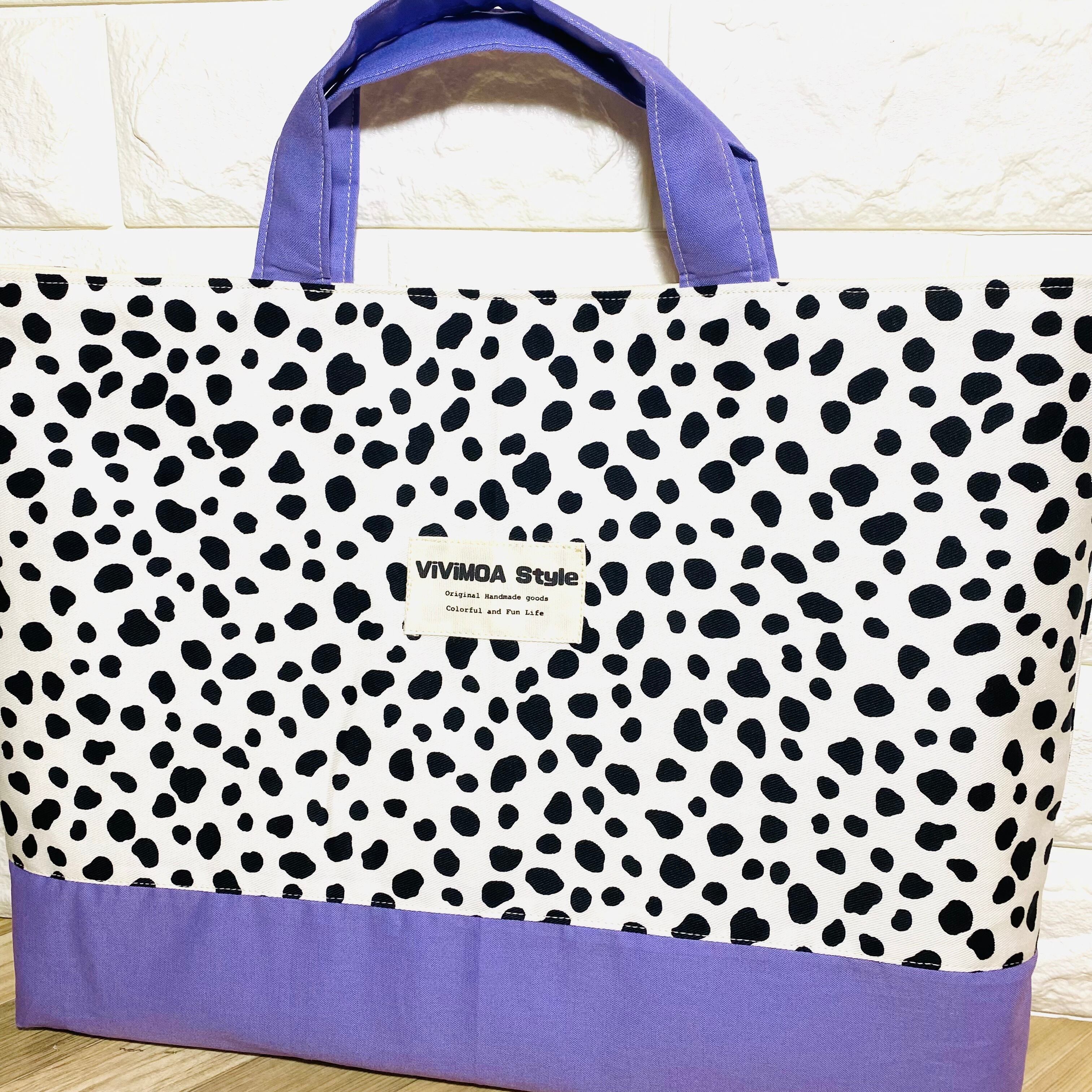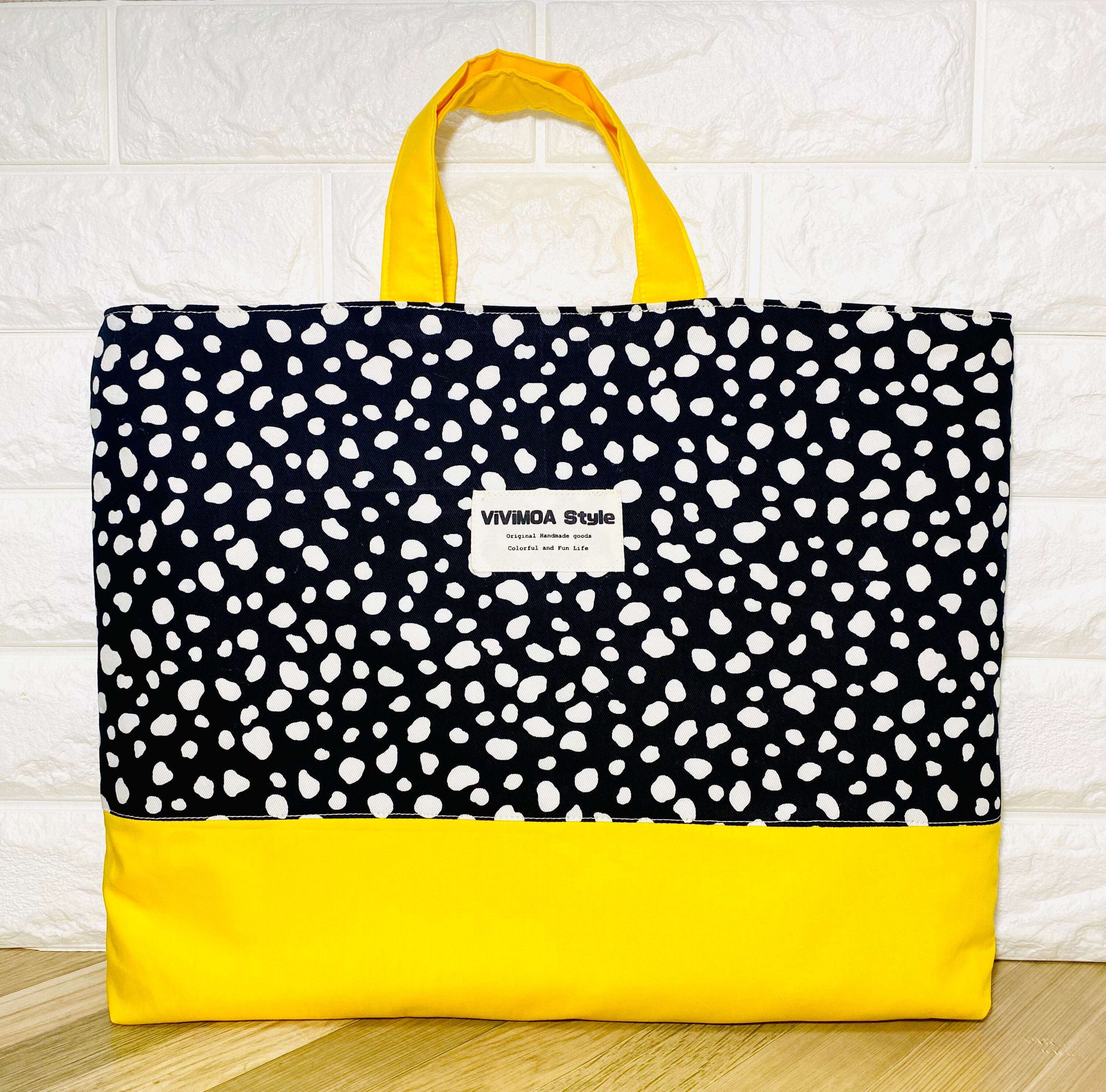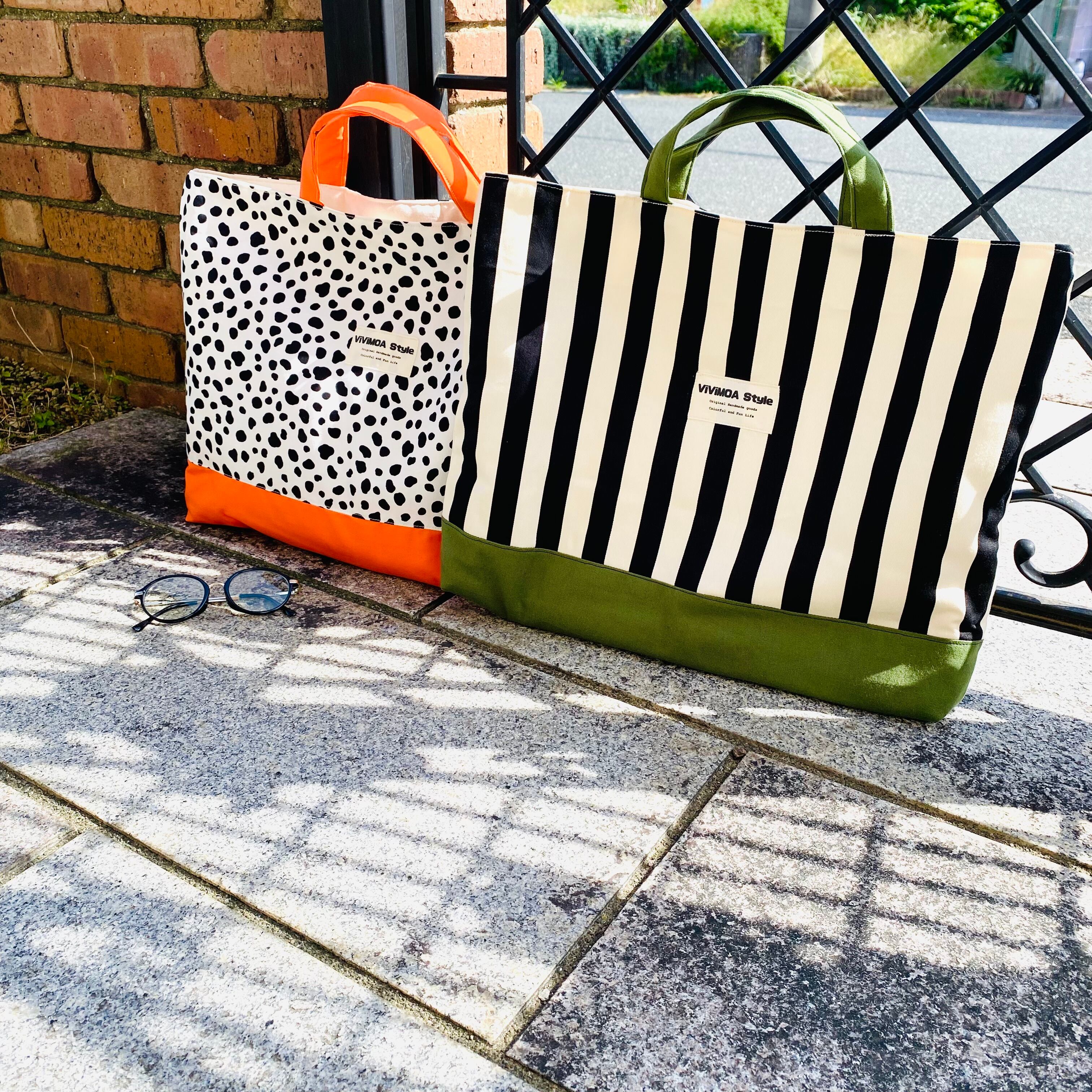 図書バッグ 手提げバッグ レッスンバッグ 大きめサイズ 35×45 絵本バッグ ハンドメイド ViViMOA Style ビビモア 新品 ストライプ ダルメシアン柄
