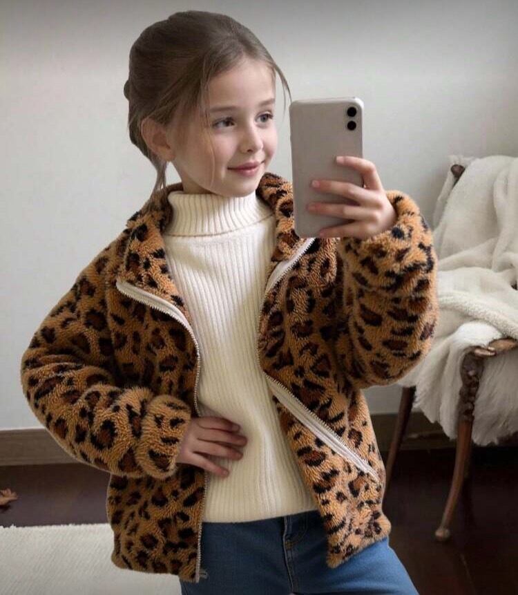 フリース 豹柄 120/130 ヒョウ柄 アウター ジャンパー ジャケット 韓国子供服 ViViMOA Style ビビモア