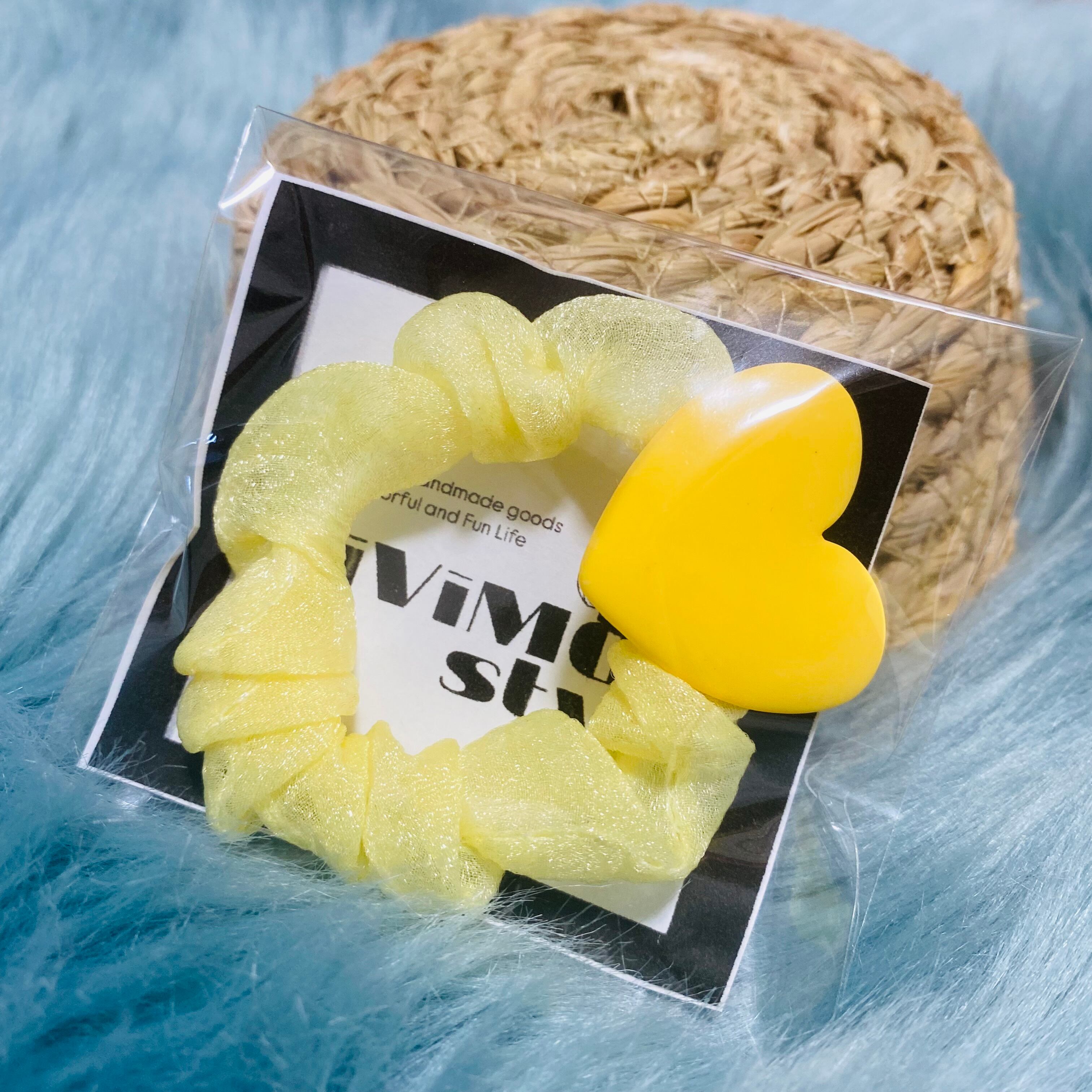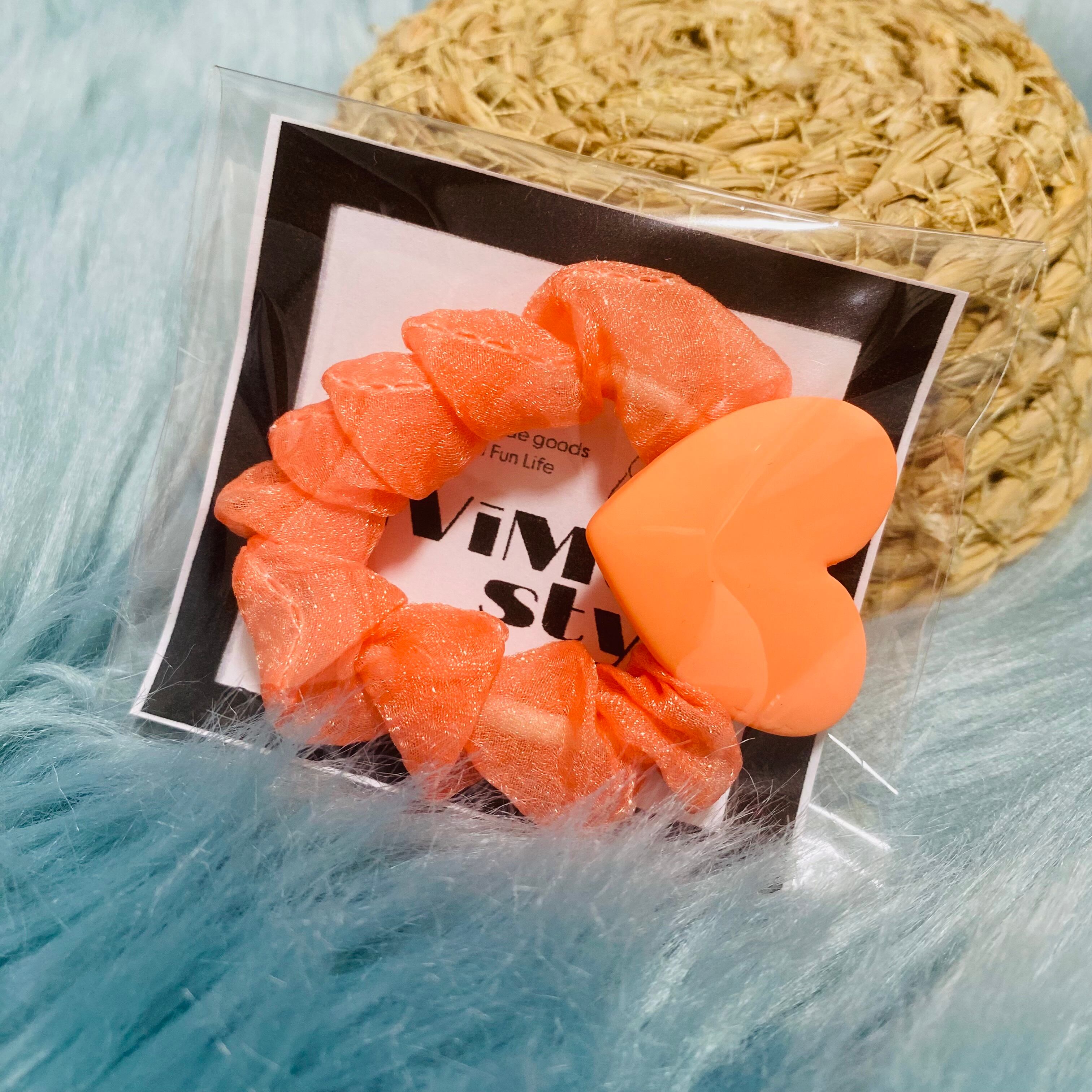 シュシュ ヘアゴム キッズ ハート かわいい おしゃれ ヘアー アクセサリー ヘアアクセ 青 黄色 オレンジ 紫