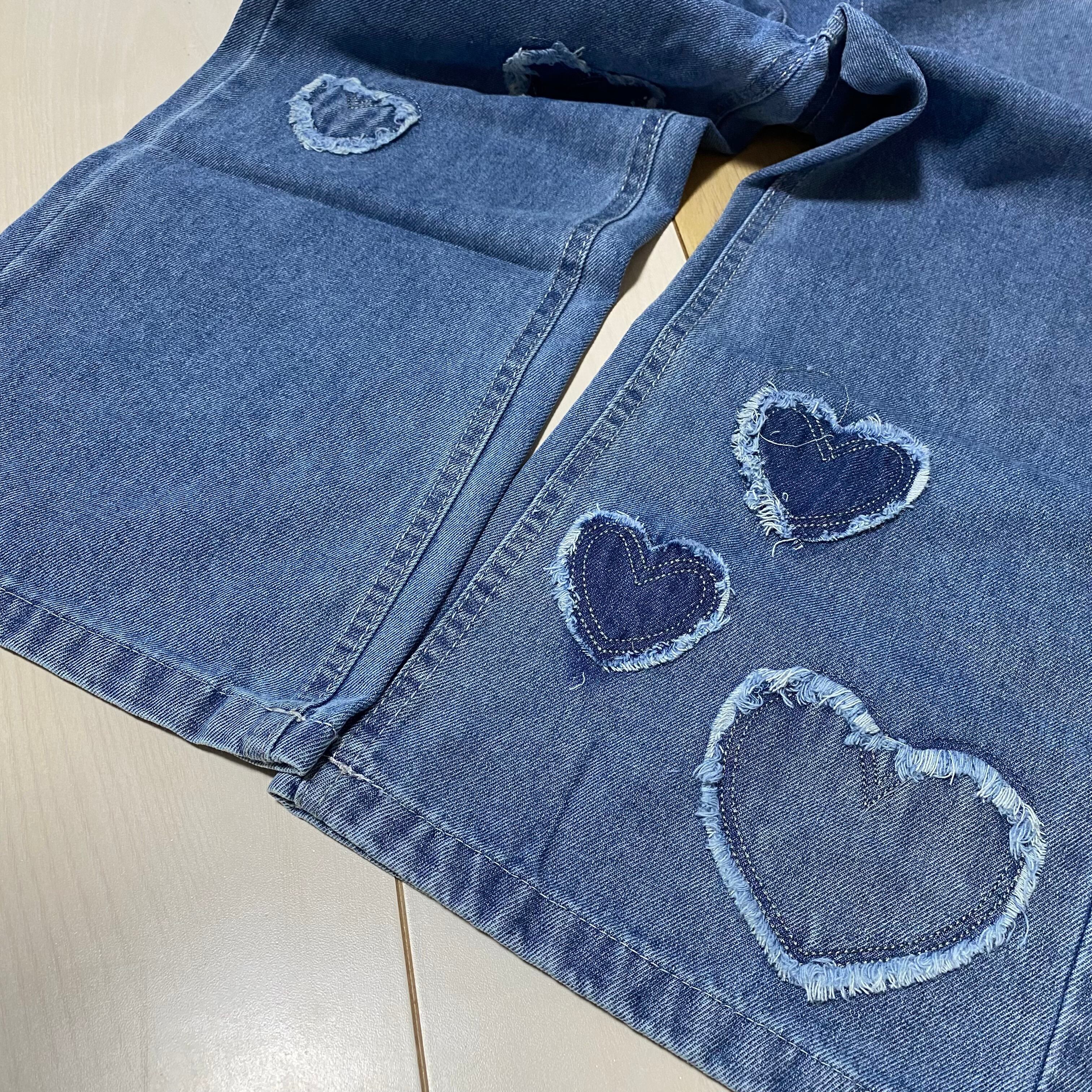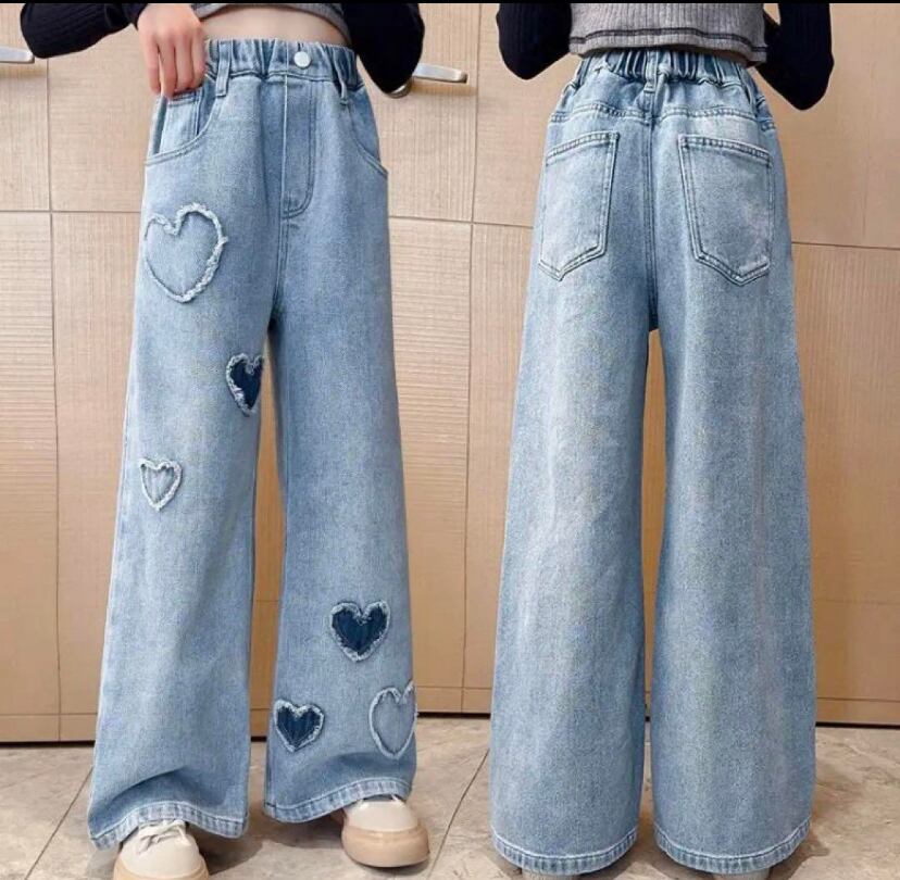 キッズ デニムパンツ 130/140 ワイド ジーパン ジーンズ 韓国 ハート ビビモア ViViMOA 新品